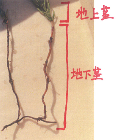 地中では地下茎の成長も旺盛で、時間の経過とともに硬く、色濃くなってくる。木のように古いほど太くなるわけではなく、干からびて硬くなり、細くなってしまう場合もある。栄養が詰まっているのか、太くて立派な地下茎もある。