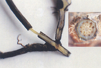 観察写真を整理していて、地下茎の断面は一通りではなく、季節や部位によって異なることに気がついた。さらに地下茎の断面は、内側とそれをドーナツ状に包む外側の二重構造になっている。内側は軟らかく水分もあり、引っ張ってもつるのように切れにくい。周りの部分はカサカサで、パキッと折れるほどだ。